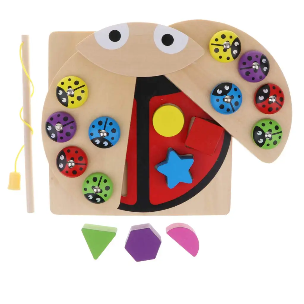 Review 2 in 1 Wooden Magnetic Ladybug Fishing Game Geometric Blocks Matching Game Early Learning Education